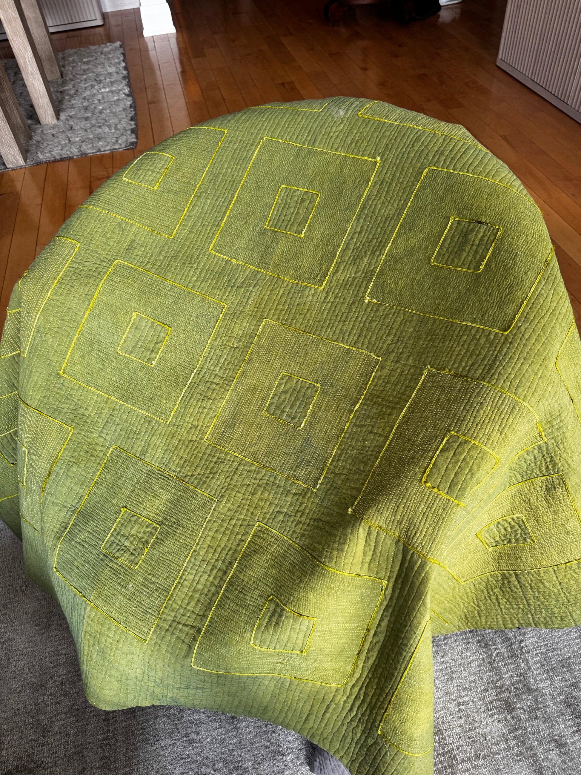 Just finished my first biscotti quilt wall hanging. Love the process. Love the advice on subtle colors...will go low level colors with less contrast next time!