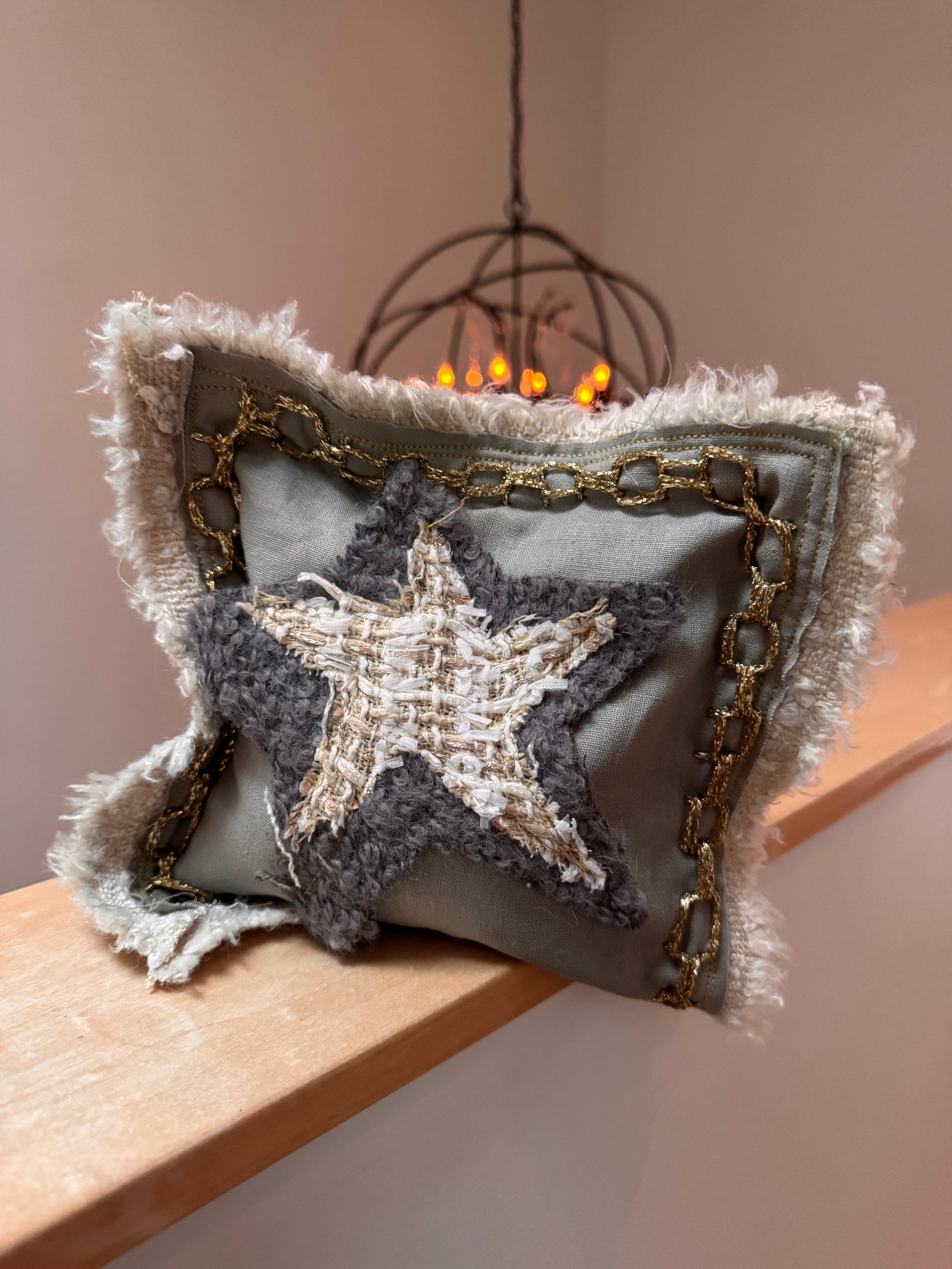 8x8 Doorstop Pillow with Chanel Fabric Star and Gold Embroidered Chain (pillow 3)